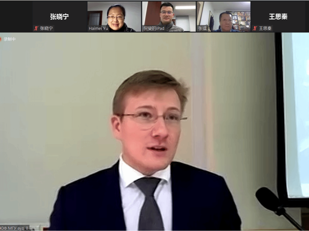 师生通过ZOOM会议平台与莫斯科大学师生在线交流。