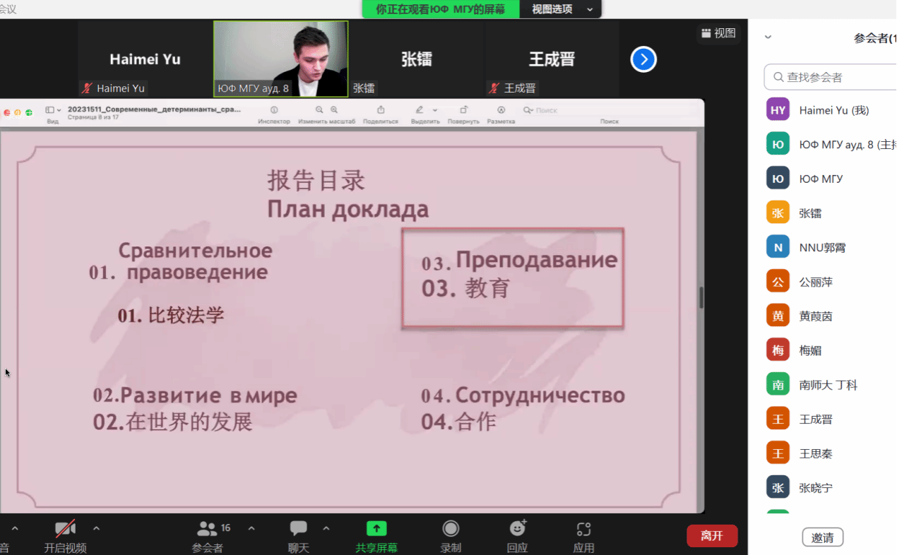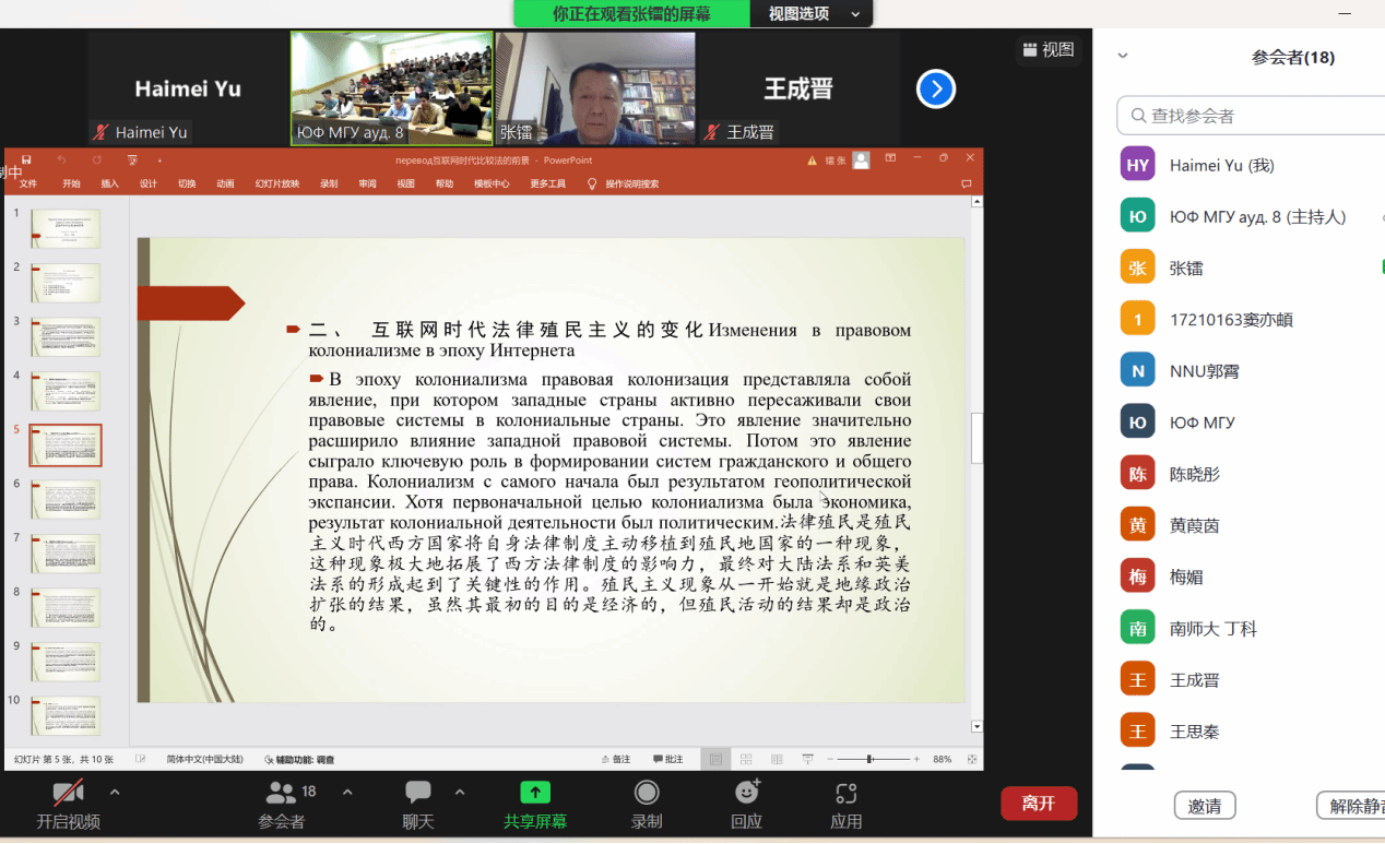 联合举办了题为“比较法的当代决定因素:中俄比较主义者的经验”的混合式教学研究会议。会议由莫斯科大学禁漫天堂