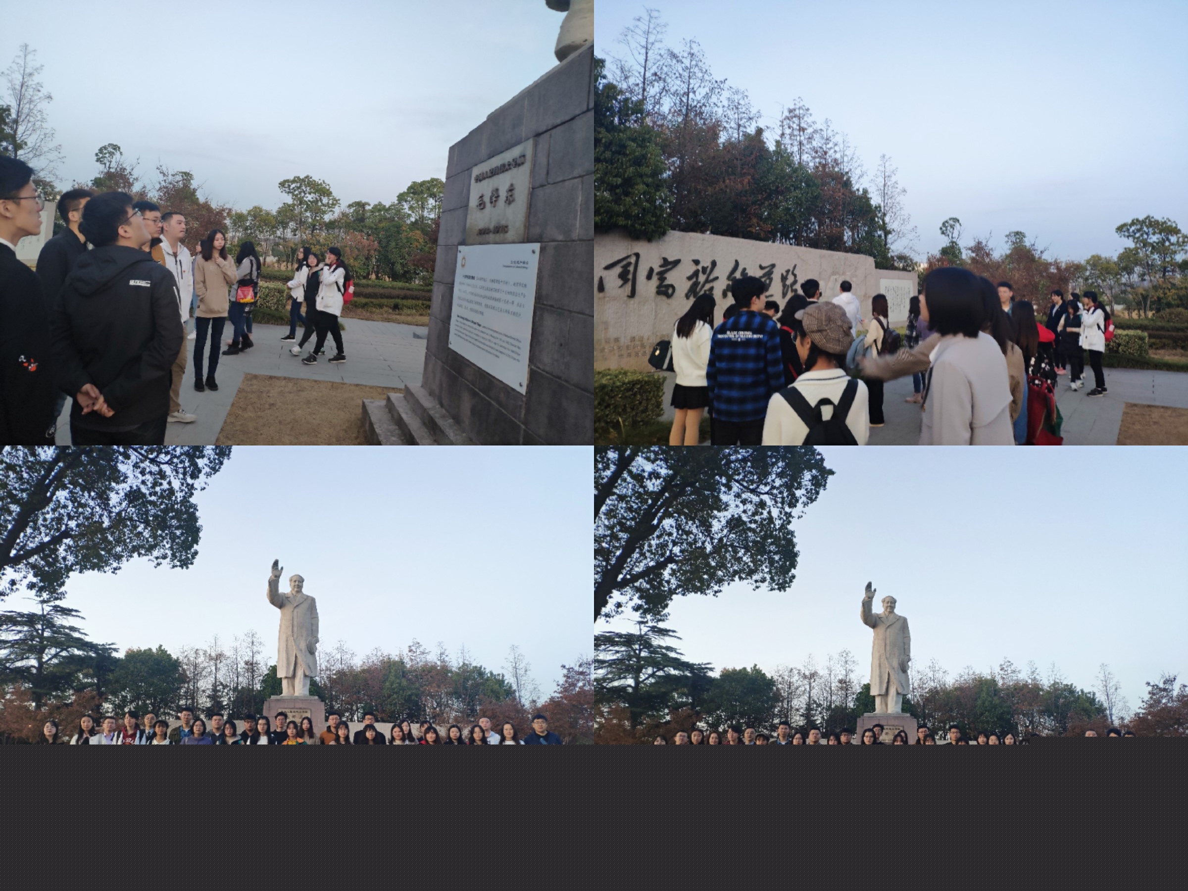 师生党员一行前往十月村广场瞻仰毛主席塑像。