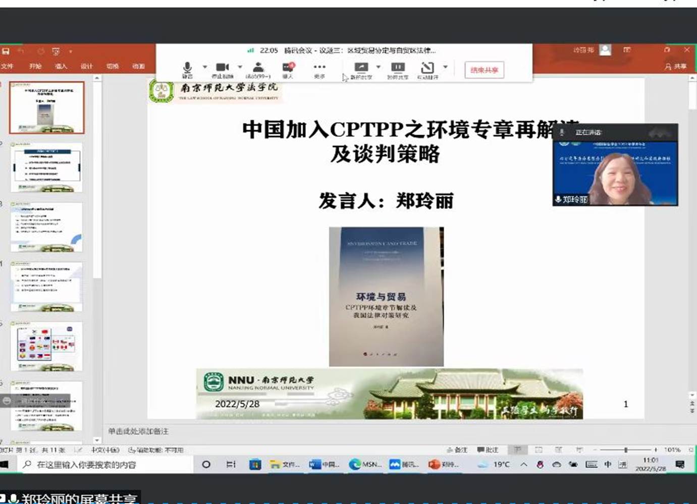 、中国法治现代化研究院郑玲丽副教授以《中国加入CPTPP之环境专章再解读及谈判策略》为主题做了精彩发言。该组报告人及其汇报还有南开大学禁漫天堂