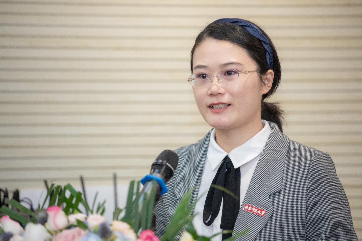 紧接着,新生代表姚澜同学发言,她代表2021级全体新生向领导的关怀、老师的教导和同学的鼓励表示感谢,并祝福同学们在求学过程中有所收获,希望马里兰项目发展越来越好!