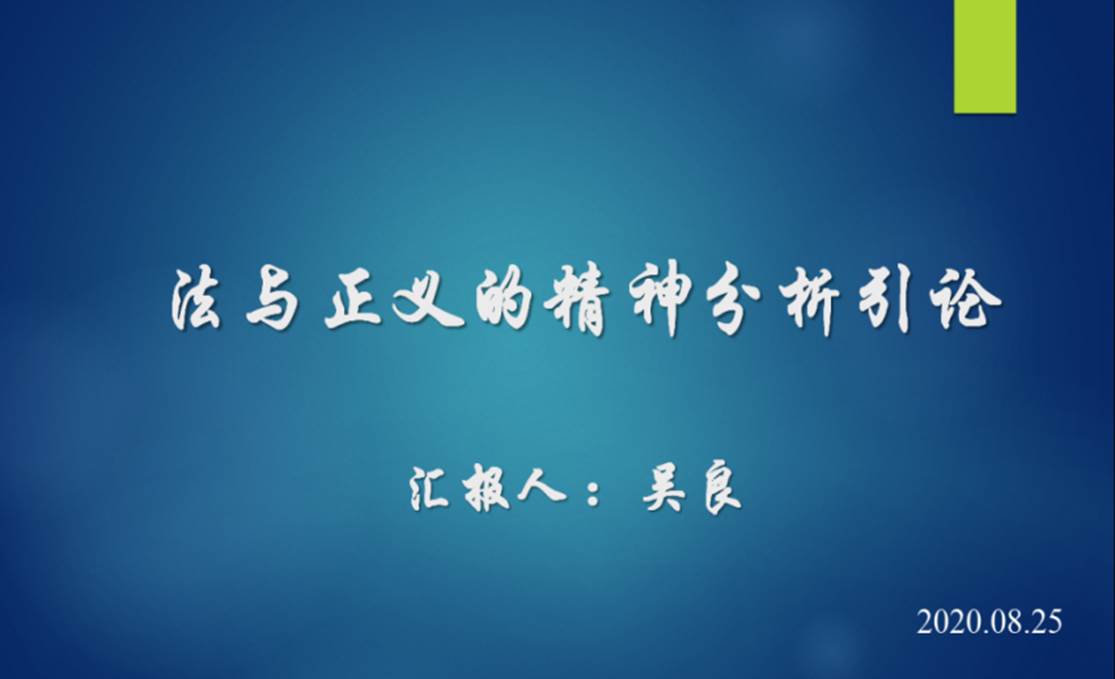 接下来,西南大学心理学部的吴良同学汇报比宁费尔德《法和正义的精神分析引论》的译述工作。比宁费尔德生于1886年,逝于1961年,著有《无过错责任》《德国人和犹太人》《重新发现正义》等。《法和正义的精神分析引论》是精神分析法哲学的代表作之一,刊印时包括《基本关系篇》和《分析篇》两部分,此次汇报的是前者。全文结构共分为三章:导言、家庭和国家。“导言”是基本关系篇和分析篇的内容概述,提出制度心理学方法。“家庭”部分涉及兄弟姐妹、父母与孩子、丈夫与妻子、稳定与安全以及自然法的相对性。本文探讨的是基本关系,因此汇报人详述了前两节中的平均、奖励、自由、特权和偏爱需求以及神权崇拜、无序个体、自我决定和社会合作需求。“国家”部分涉及与家庭中各种要求对应的公私法体系,汇报人在此套用作者总结的一句话,“某项原则主导某类法律的同时,会受到其他原则的限制”,并用文中相应的例子予以释明。最后,汇报人谈了自己的两点翻译心得:一是尊重文本,二是日积月累。