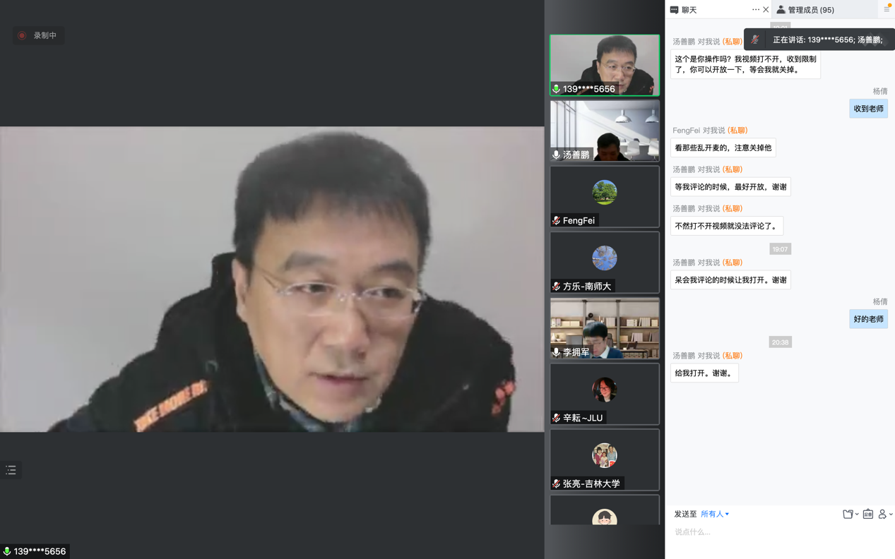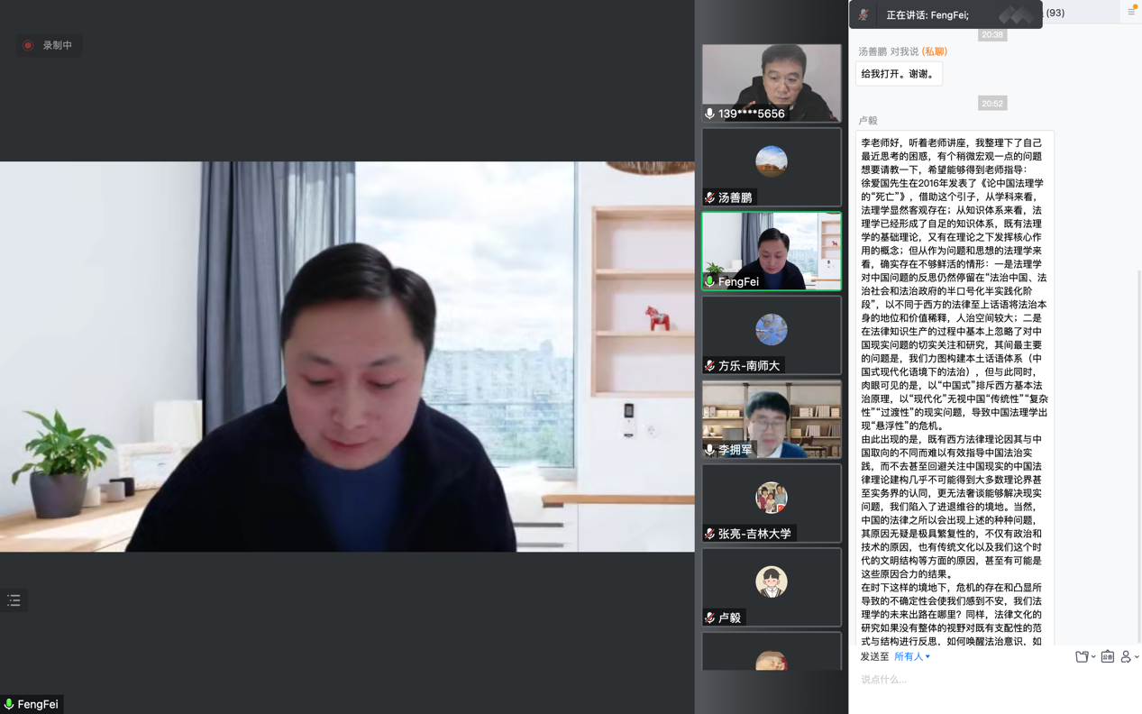 庞正教授主持,汤善鹏教授、丰霏教授与谈,来自全国高校数百名师生通过腾讯会议线上参加,共同聆听了李拥军教授精彩的分享。