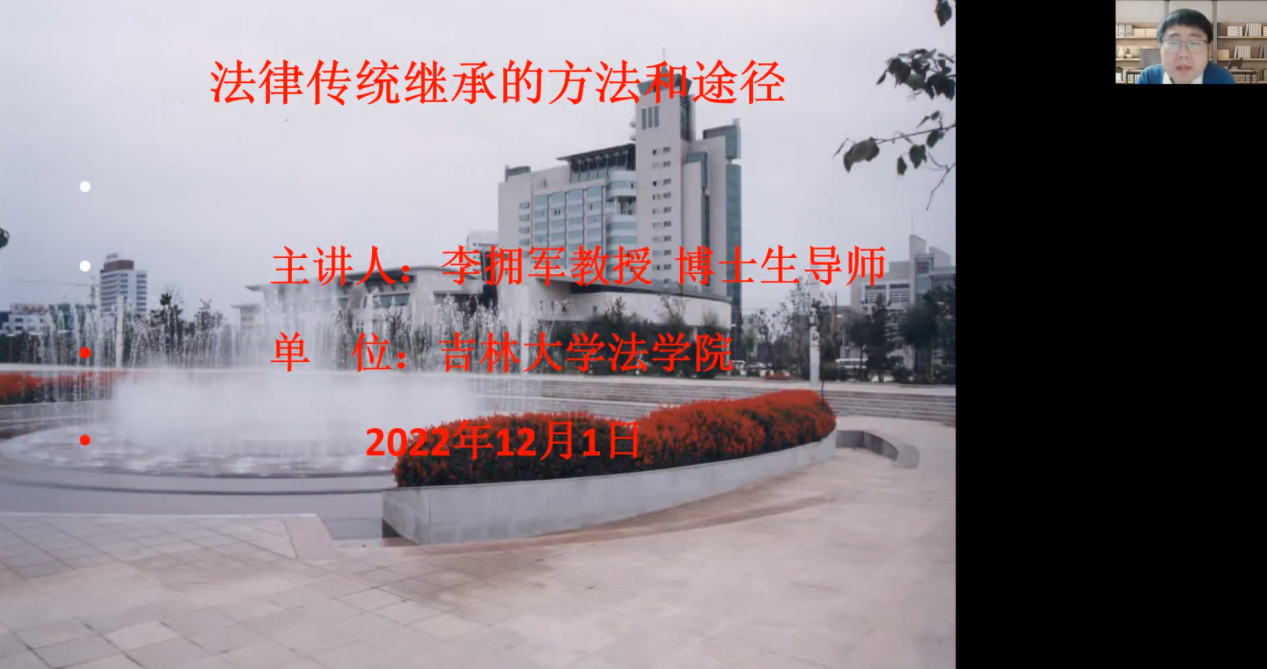 院庆系列学术活动——“法律传统继承的方法和途径”于线上成功举办。本次活动邀请到吉林大学“匡亚明学者”、教授、博士生导师李拥军老师担任主讲人,由禁漫天堂