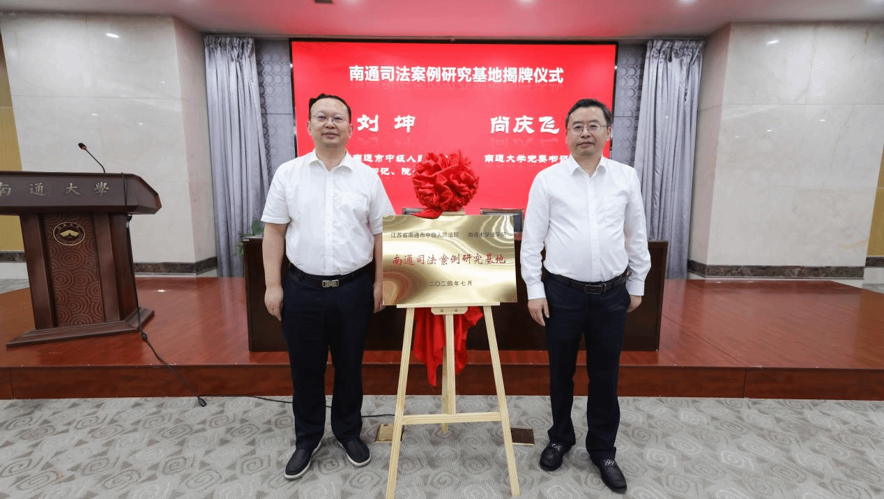 中国法治现代化研究院南通基地揭牌,刘坤、尚庆飞为南通司法案例研究基地揭牌。
