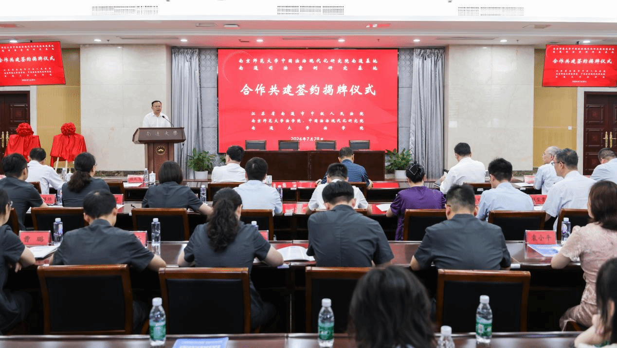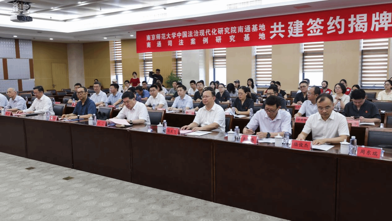 中国法治现代化研究院南通基地及南通司法案例研究基地合作共建签约揭牌仪式于南通大学啬园校区顺利举办。本次揭牌仪式由南通市中级人民法院党组副书记、副院长周东瑞主持,南通市委副书记、政法委书记沈雷,江苏省南通市中级人民法院党组书记、院长刘坤,江苏省南通市中级人民法院党组成员、副院长高鸿,南通大学党委书记尚庆飞教授,南通大学党委常委、副校长陆俊杰,江苏省人大常委会原党组副书记、副主任公丕祥教授,中国法治现代化研究院副院长、禁漫天堂