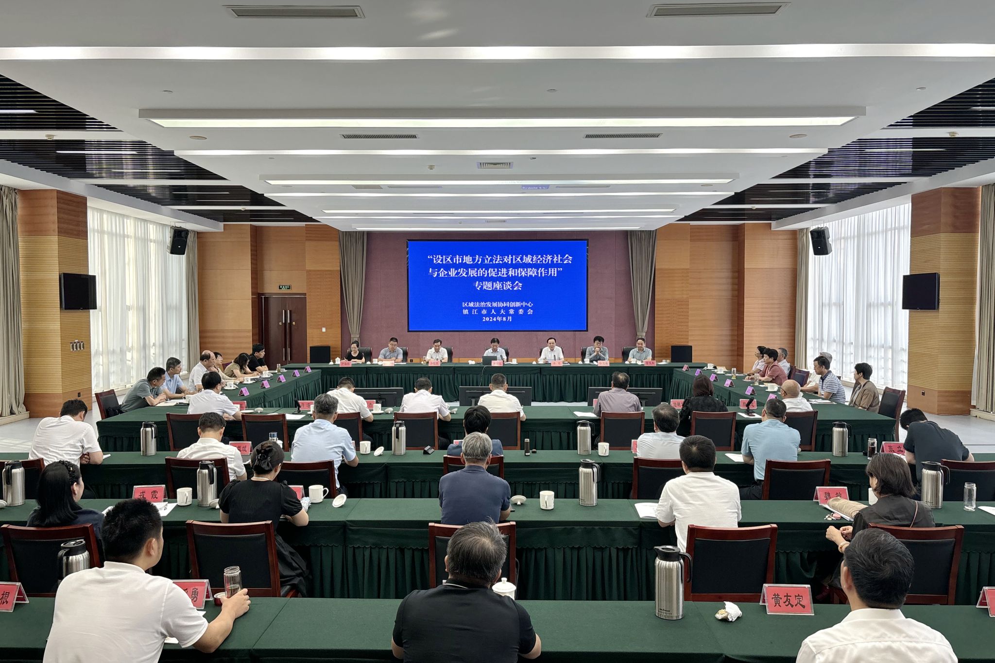 8月23日,区域法治发展协同创新中心和镇江市人大常委会联合在镇江召开专题座谈会,重点研究“设区市地方立法对区域经济社会与企业发展的促进和保障作用”,区域法治发展协同创新中心主任,省社会科学院党委书记、院长夏锦文参加会议并作专题讲座,镇江市人大常委会党组书记、主任李健主持会议。