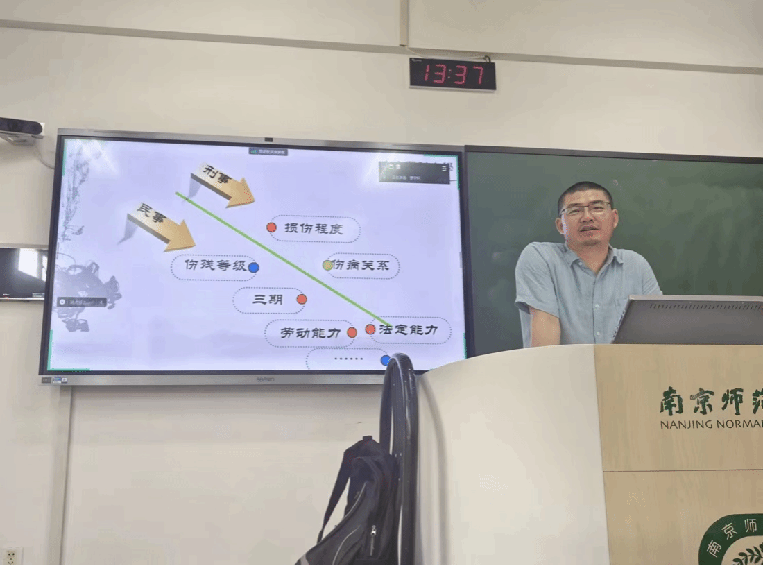 2024年6月19日下午,在我校仙林校区学明楼211教室,南京医科大学基础医学院法医学系教师、南京医科大学司法鉴定所鉴定专家张志威老师以“交通事故后定级赔付的关键——活体损伤的司法鉴定”为题开展了一场司法鉴定方向法硕的专题讲座。