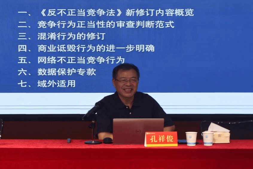 孔祥俊教授以“新修订《反不正当竞争法》精解”为题展开讲座,他从七个方面对本次《反不正当竞争法》修改与适用予以了体系化的解读,他首先回顾了《反不正当竞争法》的修法过程,指出2025年的修订虽然在大多数不正当竞争行为条款上变动不大,但所涉修订经常是直击要害、画龙点睛,其重要性不言而喻。《反不正当竞争法》具有经济发展过程中法益保护“孵化器”的作用,当市场上出现新型法益需要保护而暂无其他明确法律对它进行规制时,可由《反不正当竞争法》暂行保护,待外界对该法益归属达成共识后,再将其置于另外的法律中进行保护。对此,他以体育赛事画面、游戏规则、数据保护等法律规制问题进行举例,进行了诠释。接着,他对竞争行为正当性的审查判断范式进行了解读,认为要发挥《反不正当竞争法》第二条一般条款的实际用途,把握好第二条的分析框架——以不正当竞争行为为基础;在构成要素中将“扰乱市场竞争秩序”置于更高位阶,以符合立法旨意;明确《反不正当竞争法》中具体法益和一般法益保护的差异和竞争中性原则,以更好运用该法去解决实践中的问题。随后,他就《反不正当竞争法》中具体规定的为混淆行为、商业诋毁行为、网络不正当竞争行为、数据保护专款予以了重点分析,最后对我国《反不正当竞争法》的域外适用予以了阐释。在讲座结束时,孔祥俊教授强调要明晰各条文边界与内涵,体会立法者修订条文的目的性。