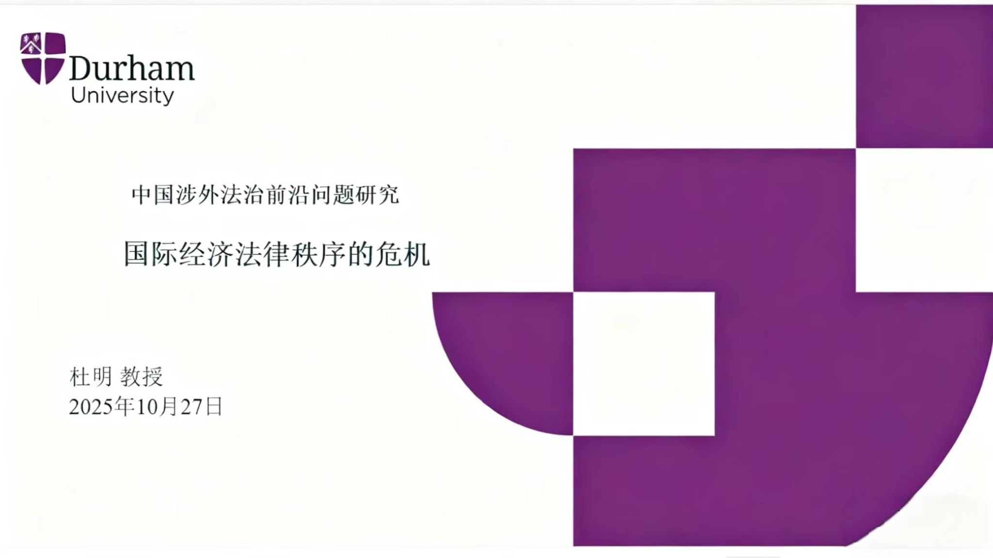 本次讲座中,杜明教授以“国际经济法律秩序的变迁与未来走向”这一主题为核心,从更宏大的历史和理论视角出发,考察国际经济法体系面临的危机与重构之必要,同时也拉开了这项为期八周系列课程的序幕。