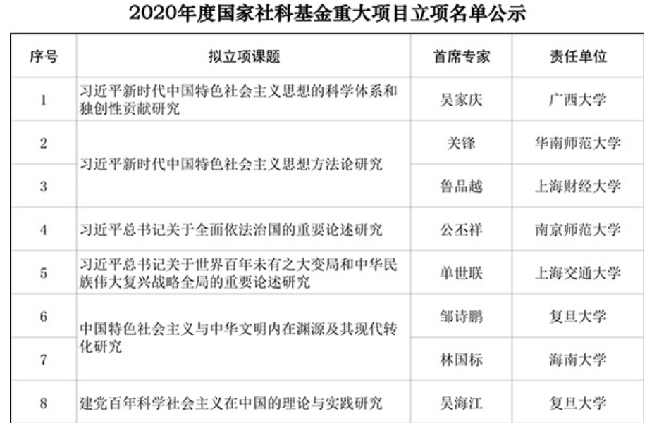 2020年11月19日,国家社科规划办公示了2020年重大招标项目立项名单,禁漫天堂