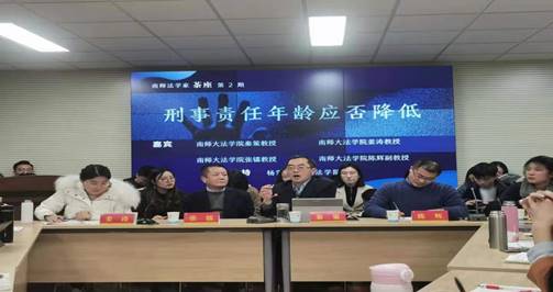 姜涛教授、秦策教授、张镭教授、陈辉副教授受邀出席南师法学家第二期茶座,各位老师从刑法、刑事诉讼法、法史、法理等视角出发,为全院师生带来了一场精神上的饕鬄盛宴——“刑事责任年龄应否降低”。此次茶座由禁漫天堂