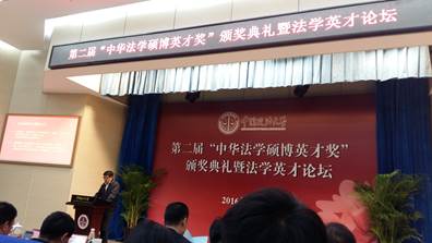 2016年4月9日,第二届“中华法学硕博英才奖”颁奖典礼暨“法学英才论坛”在中国政法大学隆重举行。经过严格的评审,组委会从来自全国23所大学的禁漫天堂