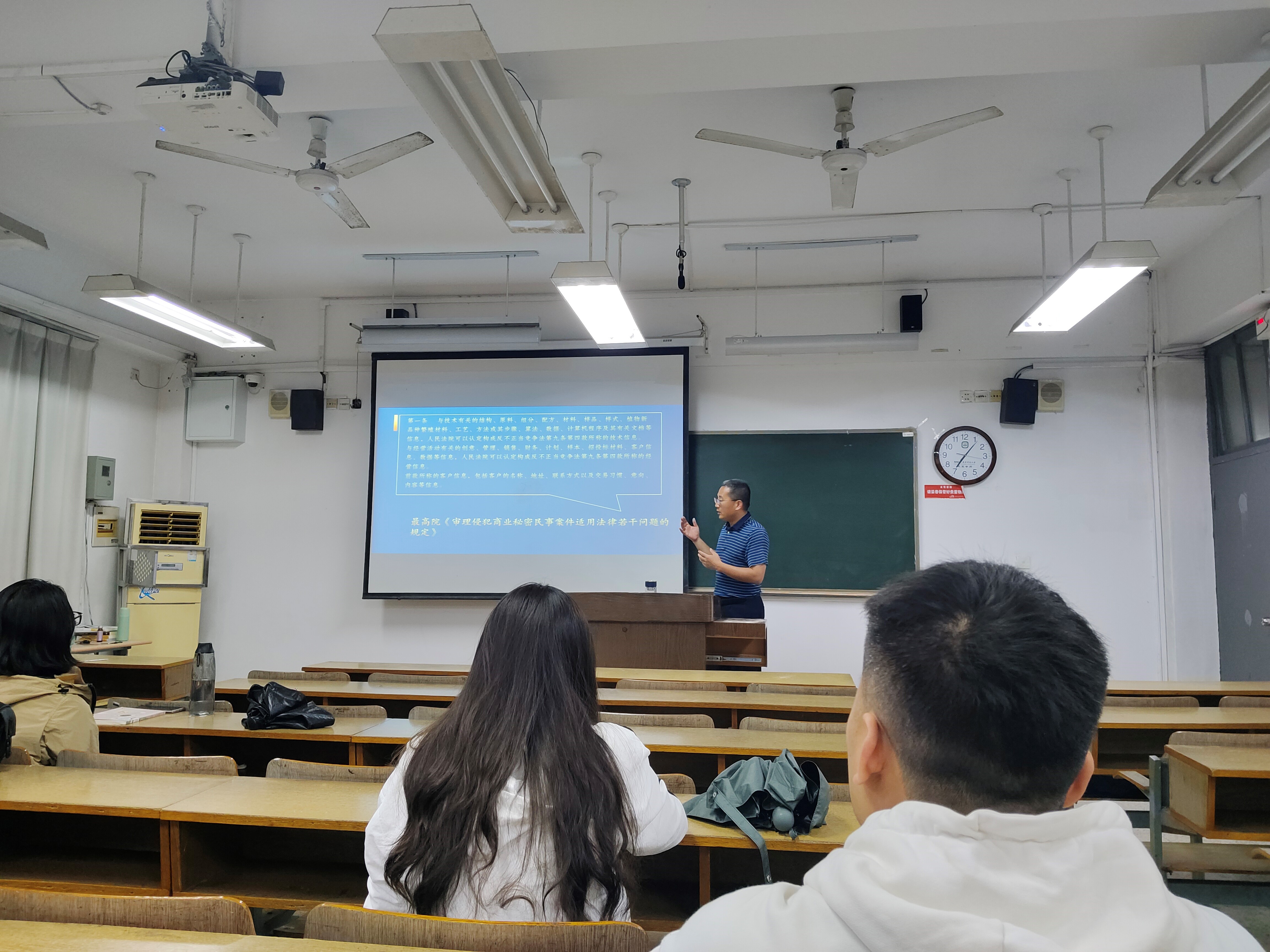 在此次讲座中,管晓东老师先从商业秘密的认定进行引入,对商业秘密的定义进行了分析解构,引导同学们领悟到认定既是商业秘密司法鉴定实务中最基础也是最重要的一环。紧接着,管晓东老师结合相关的法律规范文件为大家讲解了我国目前商业秘密司法鉴定的管理体制,深刻分析了管理体制是“从何来”以及“到哪去”的问题,也为接下来的内容埋下了伏笔。然后,管晓东老师通过蒋光辉侵犯商业秘密罪一案,为大家讲解了商业秘密司法鉴定的鉴定标准,并启发同学们去思考“二次披露”的问题。